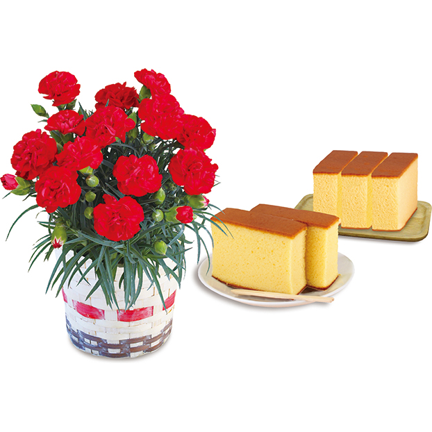 さかえ屋 蜂蜜かすてらとカーネーション「レッド(4号鉢)」