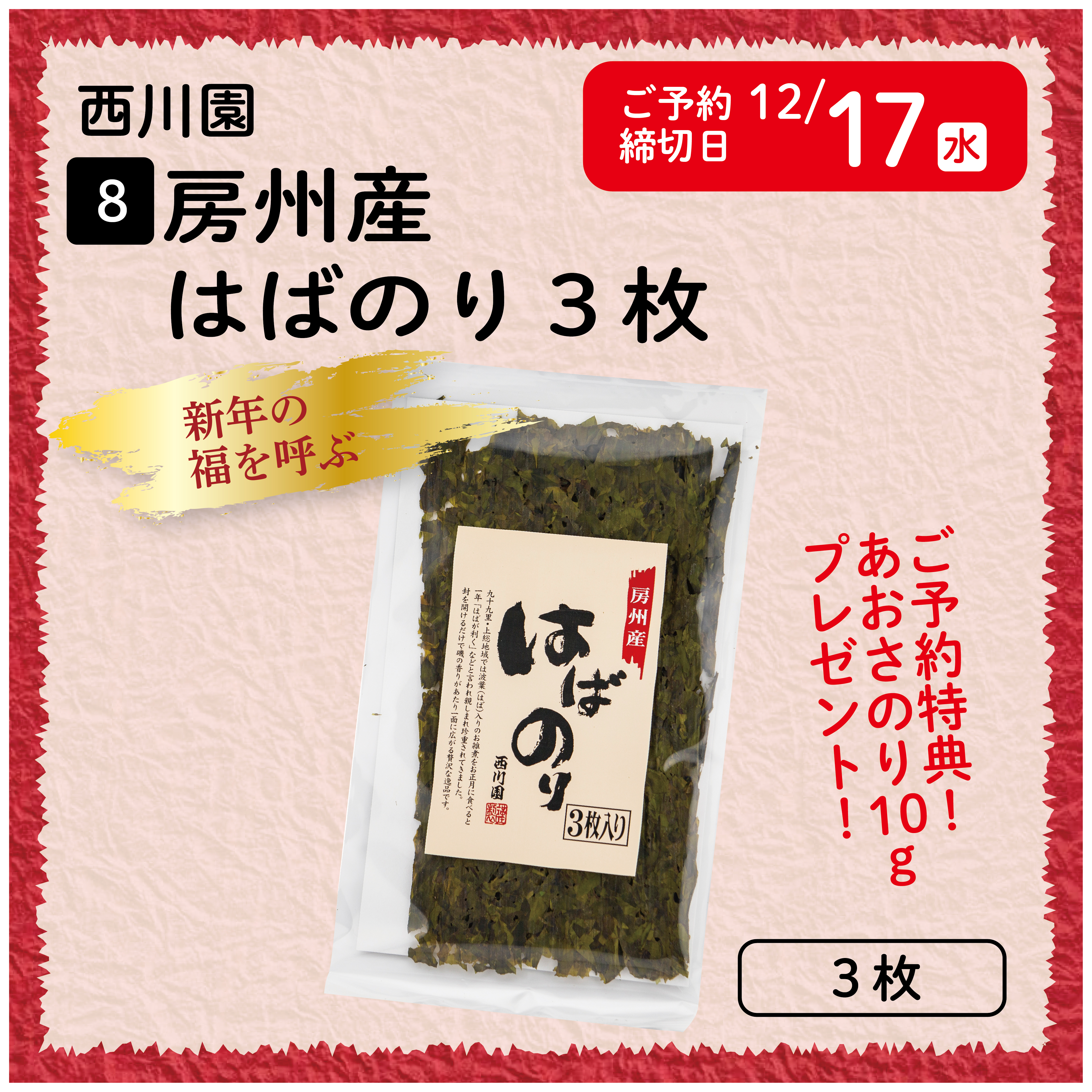 【8】西川園「房州産はばのり・3枚」