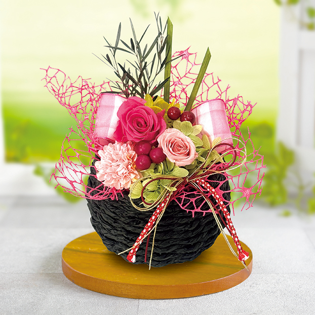 プリザーブドフラワー ばらの花かご